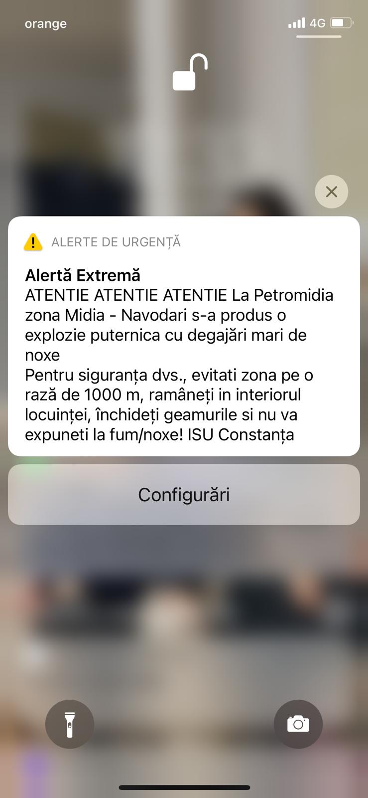 Autortițățile au emis o avertizare de tip RO-Alert prin care populația este informată să nu se apropie la mai puțin de 1.000 de m.