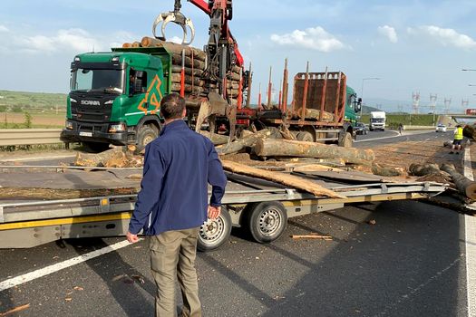 Un camion încărcat cu lemne a pierdut o parte din încărcătură, pe Autostrada 1 (Sibiu-Orăștie). Din cauza materialului lemnos căzut pe carosabil, circulația rutieră a fost oprită mai multe ore.