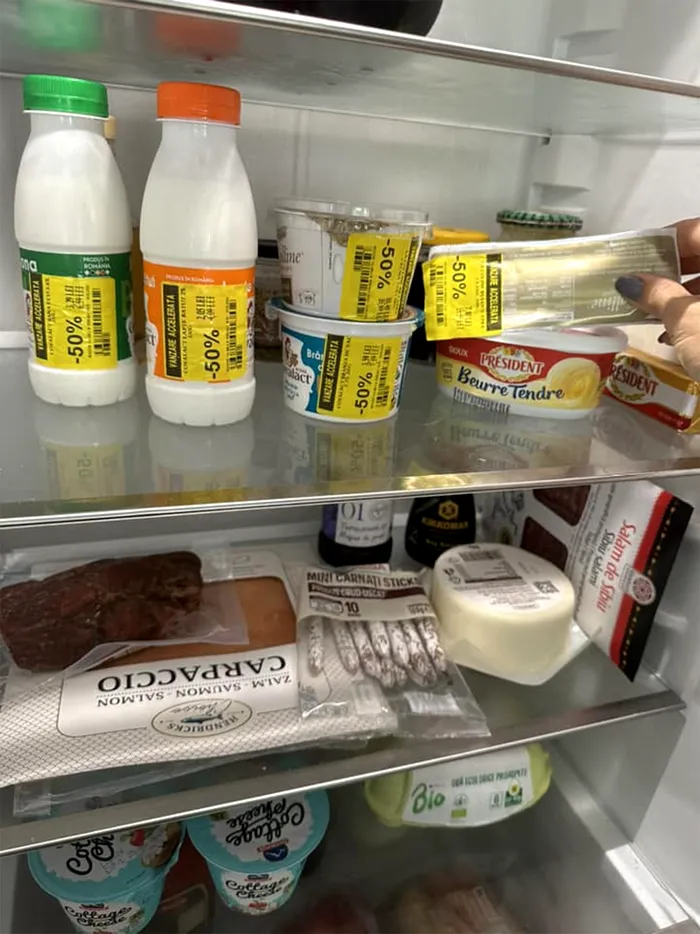 „În weekend a fost și ziua copilului și ziua internațională a laptelui. Și apropo de lactate, confirm că le mănânc expirate. Ba mai mult, le cumpăr din frigiderul cu preț redus/vânzare accelerată. Așa arată frigiderul meu”, a spus pe Facebook, de nutriționistul Mihaela Bilic.