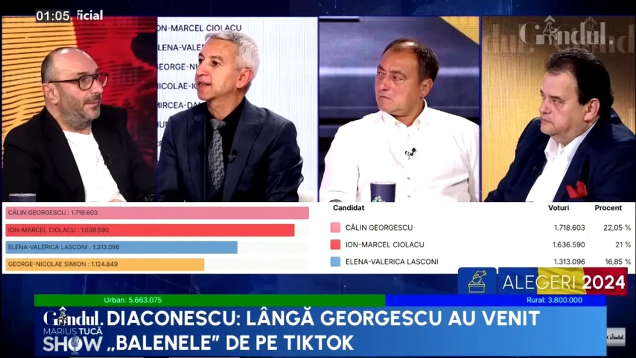 „Marcel Ciolacu a avut în 2 săptămâni o hemoragie de șapte puncte procentuale. Un sfert din votanți s-au mutat către Călin Georgescu,” a susținut acesta.