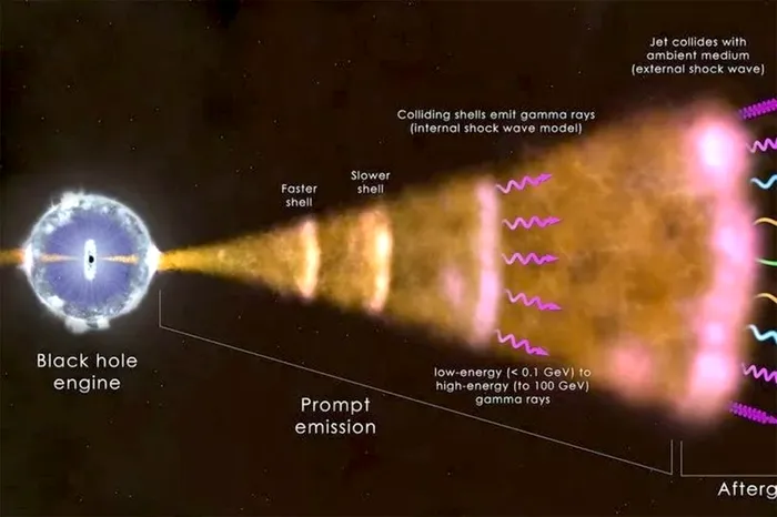 Experții consideră că explozia unei supernove  supernovă a declanșat BOAT și că ar fi lăsat o gaură neagră în urma ei. Fenomenul a accelerat particulele de materie și antimaterie la viteze foarte apropiate de cea a luminii, degajând astfel o energie uriașă. Antimaterie este termenul folosit pentru definirea opusului materiei formate din protoni, neutroni și electroni. Antimateria este formată din antiparticule, care diferă de particule prin faptul că au o sarcină opusă, dar are masa egală cu aceastea. Dacă o particulă intră în coliziune cu antiparticula sa, cele doua se anihilează, emițând raze gamma, fotoni de înaltă energie. În 1928, Paul Dirac a intuit existența antimateriei.