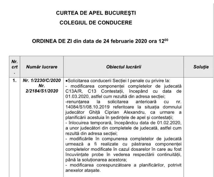 Mai exact, în luna octombrie 2019, fiind delegat la șefia Secției I penale a CAB, judecătorul Richițeanu adresează Colegiului de conducere solicitarea cu nr. 14084/S1/08.10.2019 de redistribuire a judecătorului Ghiță Ciprian Alexandru la o alta secție din cadrul Curții de Apel București.