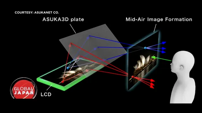 Numit ASKA3D, proiectează un afișaj cu cristale lichide în aerul mediu, ca o hologramă. Este deja folosit în muzee, săli de spectacole și convenții. Aceasta înseamnă că nu are uzură și, în acest moment, nu transmite nicio boală între utilizatori.