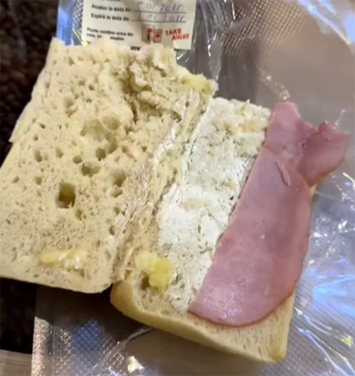 „Cam așa arată un sandwich pe aeroportul din Bacău. Superb! 30 de lei”, a spus femeia pe rețelele de socializare.