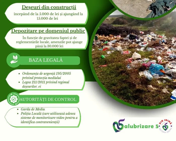Reprezentanții Salubrizare Sector 5 reamintesc bucureștenilor și operatorilor economici că depozitarea ilegală a deșeurilor este sancționată prin lege.