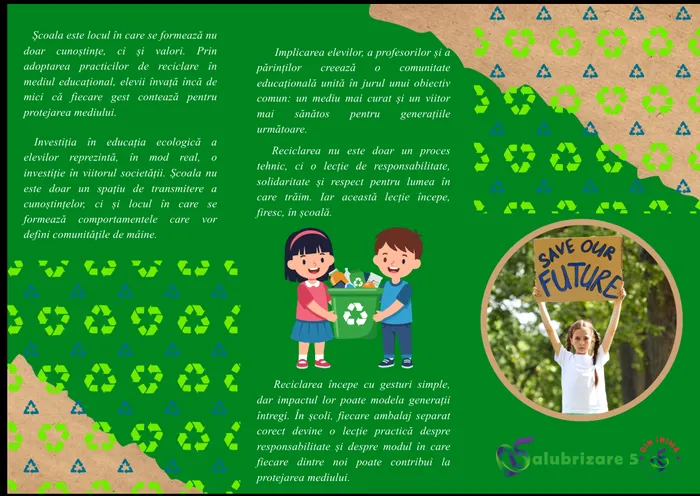 Spiritul ecologist se formează încă din şcoală pare să fie principiul pe care se acţionează în Sectorul 5. Administraţia locală, prin Serviciul Salubrizare 5 derulează o campanie de promovare a unei educaţii bazate pe protecţia mediului.