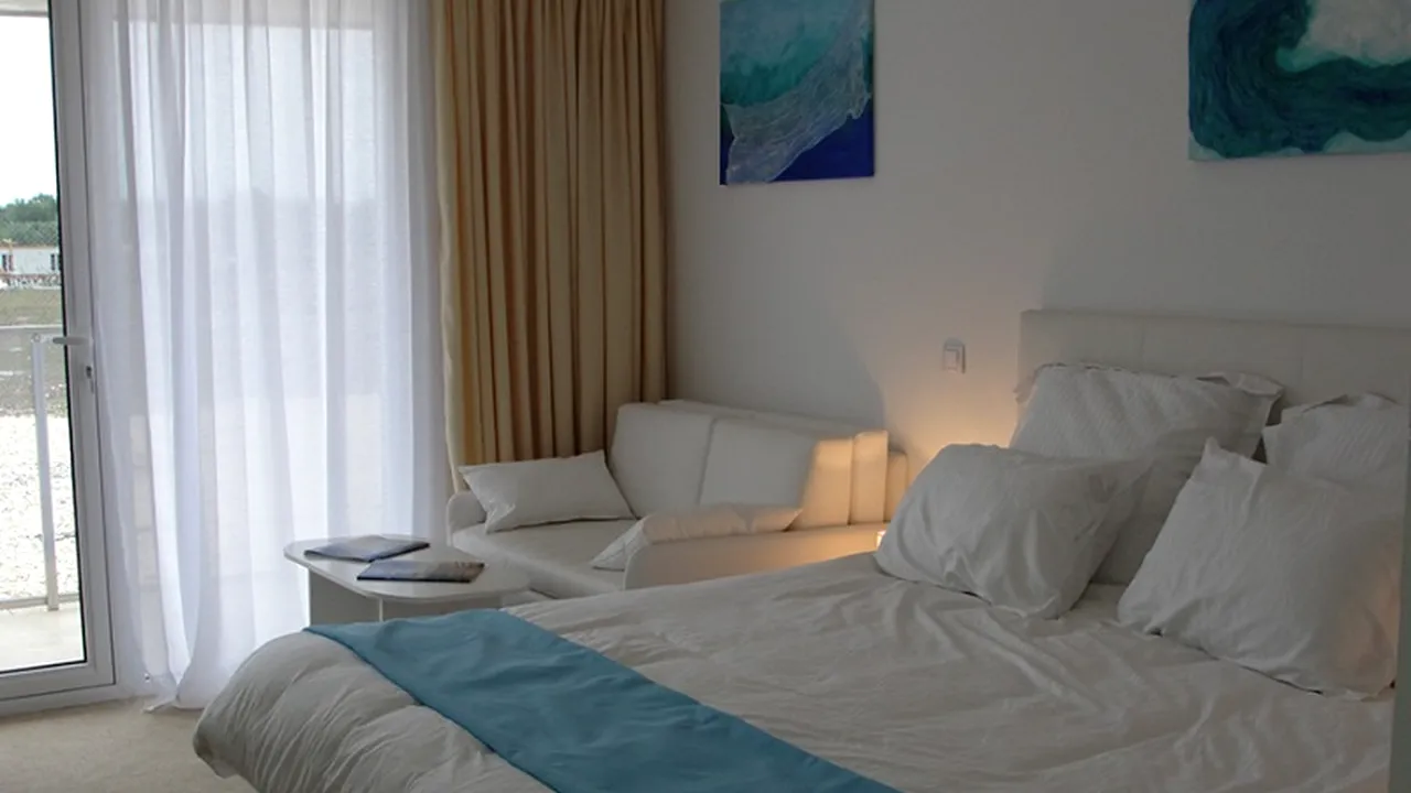 Camera de zi este complet mobilată: pat matrimonial, canapea extensibilă, noptiere, televizor LCD, garderobă și masă de toaletă. Baia este și ea complet amenajată. Costul unui pachet pentru o săptămână de vacanță într-un astfel de apartament luat în proprietate periodică este de minimum 2.500 de euro și poate ajunge până la 9.950 de euro, în funcție de sezon.