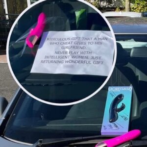 După ce a aflat că bărbatul o înșală, tânăra mămică a agățat vibratorul pe care îl primise drept cadou de la iubitul ei de parbrizul mașinii acestuia, dând de înțeles tuturor că nu este bun la pat. Autoturismul, parcat în fața magazinului Morrisons, din orașul Solihull, West Midlands, a fost văzut de toți clienții care au intrat acolo, iar majoritatea a conchis că este un mesaj creativ de răzbunare care arată inteligența femeii.