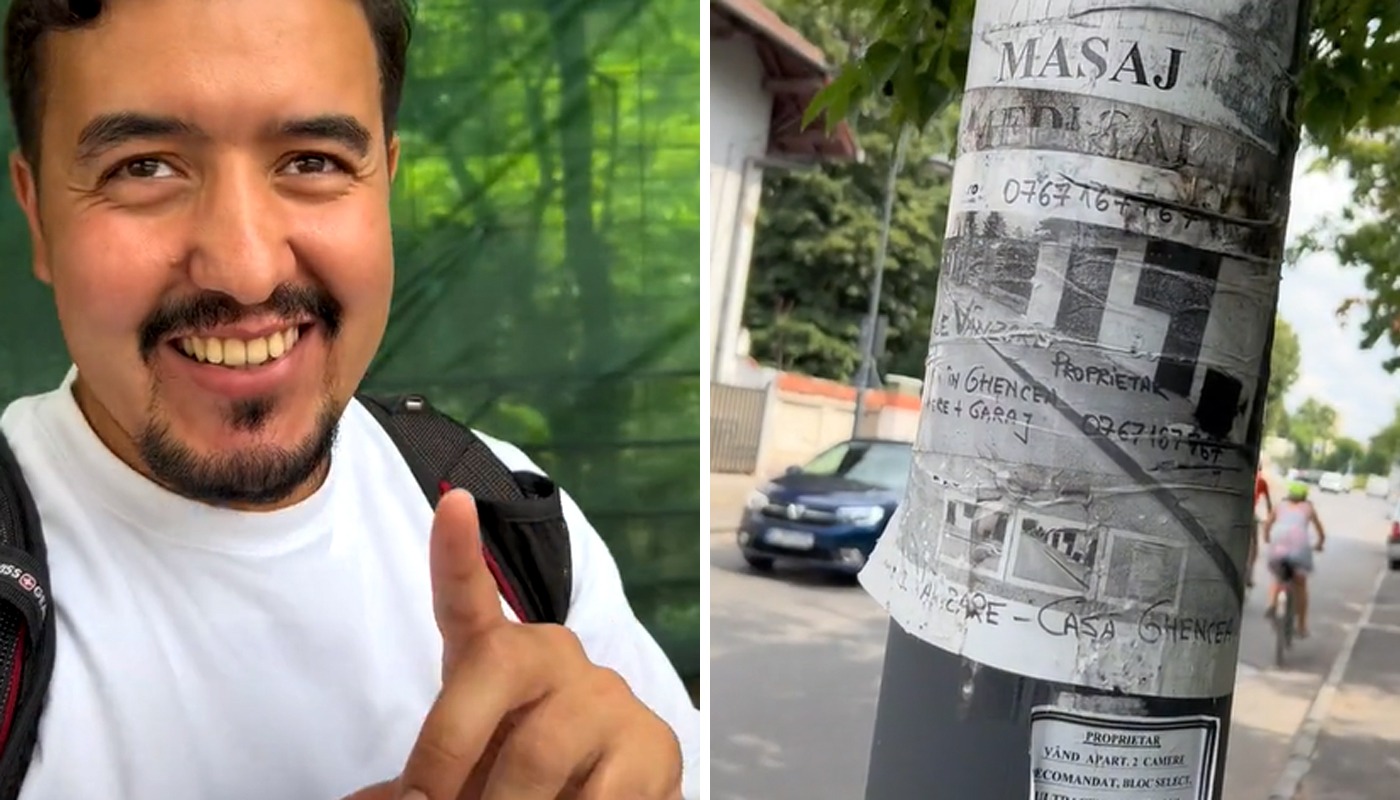 Reacția unui turist american după ce a văzut un anunț, reclamă la masaj „cu finalizare”, lipit pe un stâlp din București