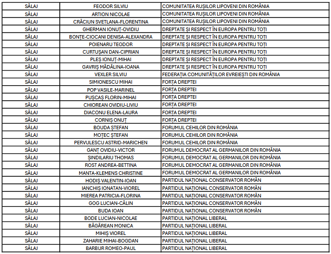 Candidații din județul Sălaj la Camera Deputaţilor – alegeri parlamentare 1 decembrie 2024