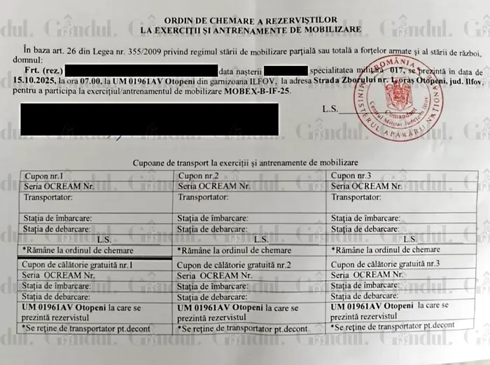 Românii au început să primească ordinul de chemare la instruire de la MApN. Gândul publică documentul primit de rezerviștii din București și Ilfov.