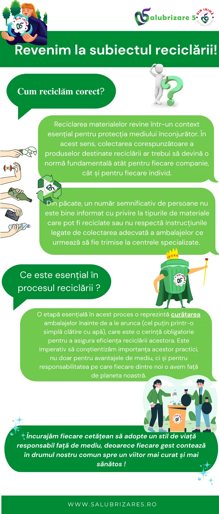 Salubrizare Sector 5 revine cu un apel important către cetățeni: reciclarea corectă a deșeurilor trebuie să devină o practică obișnuită pentru fiecare dintre noi, într-un efort colectiv de protejare a mediului.