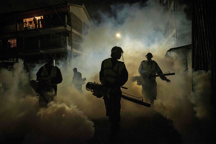 KENYA | Voluntarii echipei de salvare Sonko, Kenya, fumigau o stradă pentru a stopa răspândirea coronavirusului din Nairobi pe 6 aprilie.