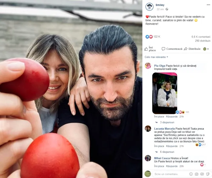 „Super cuplu. Ginuța, ești The Best și Andrei e The smiley!!!!! Sărbători binecuvântate!”, „Prima poză pe care o văd cu amândoi!!!”, „Vă admir mult pe fiecare și acum ca un cuplu! Sunteți deosebiți și sper să rămâneți frumoși în suflete împreună! Paște fericit!”, au fost doar câteva din comentariile lăsate de fani pe pagina lui Smiley.