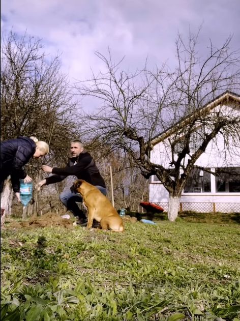 ”Suntem puțin depășiți de situație și încă nu avem tot ce ne-am dori, dar presupun că în câțiva ani vom reuși să reglăm așteptările cu capacitățile. Avem acum 9 găini, 5 câini, un porc, un iepure și o pisică, iar atribuțiile sunt împărțite între noi. De găini ne ocupăm toți, pe rând, de pisică și iepure mai mult copiii și Dana, de porc eu, de câini eu și Dana. În plus, avem grădina care necesită îngrijire și livada de care ne ocupăm mai mult eu și Dana, dar, și aici, copiii au învățat să ne dea câte o mână de ajutor. Suntem încă departe de a putea să ne hrănim exclusiv din producția noastră, dar deja unele alimente sunt procurate local: lapte, brânză și carne luăm din sat, uneori cartofi și ceapă, iar toamna grădina și livada ne acoperă o parte din necesarul de legume. Pâine am început să ne facem singuri (adică Dana), la fel și dulciuri. Să știi că nu trăim off-grid, avem magazinul la 100 m de curtea noastră, avem curent, mergem în Pitești pentru cumpărături și, alteori, în București”.