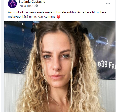 „Azi sunt ok cu cearcănele mele și buzele subțiri. Poza fără filtru, fără make-up, fără nimic, dar cu mine”, a scris Ștefania pe pagina sa de Facebook.