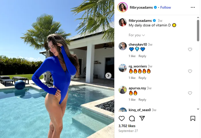 O fotografie cu modelul OnlyFans când face plajă lângă piscină postată pe Instagram a obținut 4.000 de aprecieri în doar câteva zile.