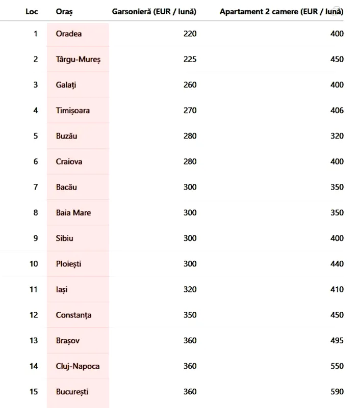 De asemenea, un alta oraș din România, care nu a fost cuprins în acest clasament oferă cele mai mici chirii, în noiembrie 2025, în ciuda valului de scumpiri și a faptului că achiziționarea unei locuințe a devenit un vis tot mai greu de îndeplinit pentru multe familii din țara noastră.