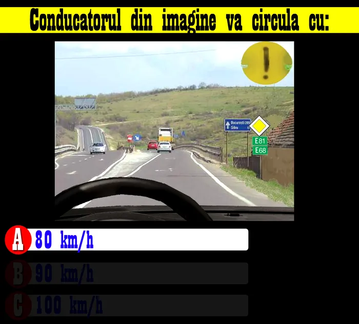 Test auto | Cu ce viteză maximă e obligat să conducă șoferul din imagine: 80, 90 sau 100 km/h?