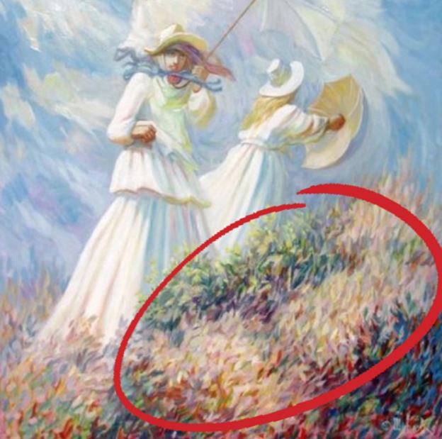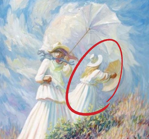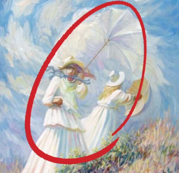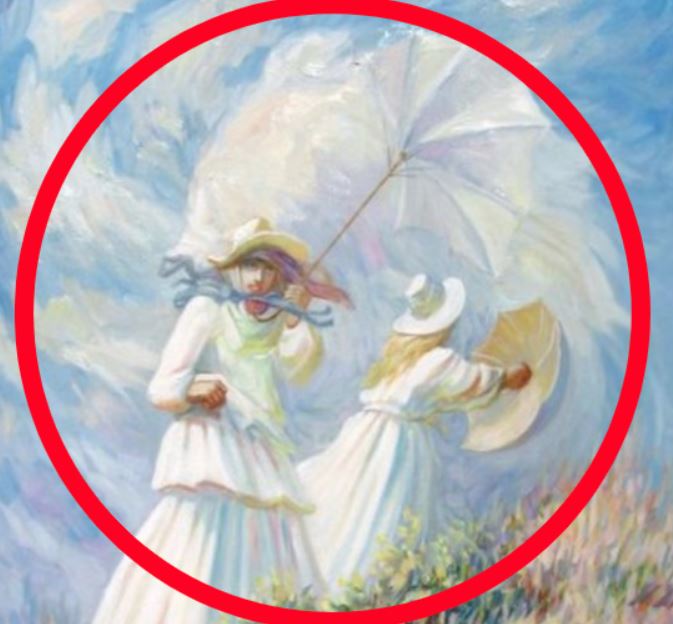 Când ai căutat prima dată imagini ascunse în această iluzie optică, ai văzut-o pe femeie deschizându-și umbrela. Spre deosebire de prietena ei din prim plan, umbrela acestei femei nu a fost suflată de vânt.