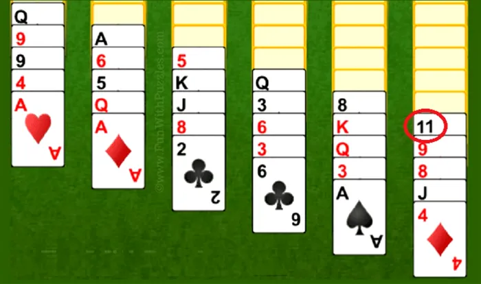 Acesta este un puzzle foarte provocator care vă va pune la încercare abilitățile. Imaginea cărților este luată din intrigantul Yukon Solitaire Card Game, dar există o întorsătură – există o eroare în această imagine, iar sarcina ta este să găsești greșeala.