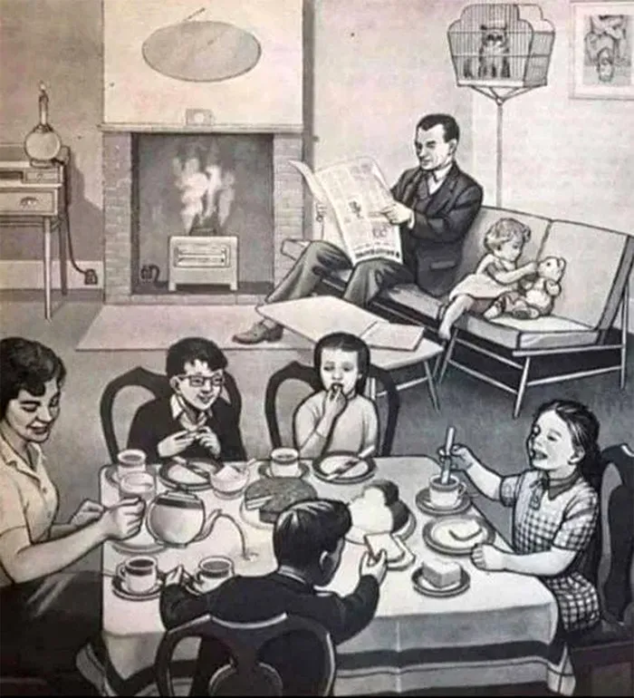 În imagine puteți vedea o familie care se bucură împreună de cină. Cu toate acestea, lucrurile nu sunt ceea ce par.