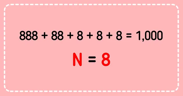 Chiar dacă este wekkend și toata lumea preferă să se relaxeze, nu strică nimănui să își pună un pic mintea la contribuție. Este un test de inteligență în care matematica are un rol esențial. Trebuie, doar, să aflați ce cifră este N în ecuația: NNN+NN+N+N+N=1.000.