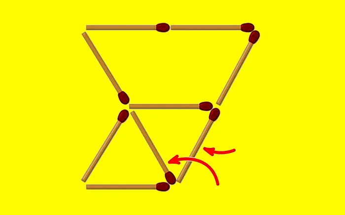Pentru testul de astăzi va trebui să obțineți trei triunghiuri mutând doar două bețe de chibrit.