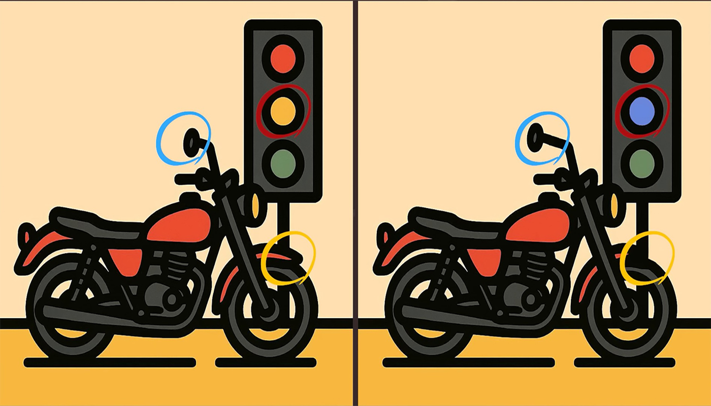 Observă deci aceste două imagini cu o bicicletă care stă pe un semafor roșu. La prima vedere, ele pot părea exact similare, dar atenție însă. Există 3 mici diferențe ascunse între cele două imagini, iar provocarea pentru tine este le găsești pe toate în doar 19 secunde.