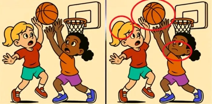 Astfel de puzzle-uri sunt foarte populare printre internauți. Ele sunt o activitate distractivă care te ajută să te relaxezi și oferă creierului tău un antrenament perfect. Vrei să vezi dacă ai o vedere ascuțită? Atunci această provocare este pentru tine! Privește cu atenție aceste două imagini cu fete jucând baschet. La început, s-ar putea să arate exact la fel, dar nu te lăsa păcălit! Există 3 mici diferențe ascunse între ele. Sarcina ta este să le găsești pe toate în doar 43 de secunde. Crezi că e ușor? Acest puzzle este mai complicat decât pare!