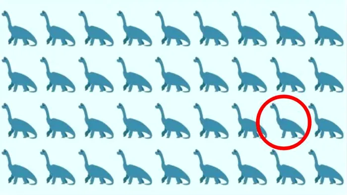 După cum poți prea bine observa, la prima vedere, toți dinozaurii arată similar, dar unul dintre ei este diferit de restul. Persoanele cu cea mai ageră vedere pot găsi dinozaurul diferit mai repede decât cele cu o acuitate vizuală medie. Privește imaginea încă o dată și încearcă să observi orice schimbare subtilă! Felicitări cititorilor cu ochi de vultur care au observat acest dinozaur unic; aveți o minte ageră și o viziune perfectă!