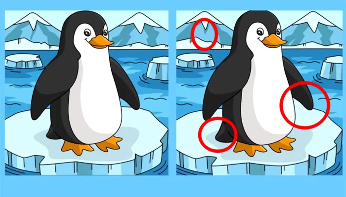 Test de perspicacitate. Crezi că ai ochi de vultur? Încearcă să observi toate cele trei diferențe în imaginile cu pinguinul care stă pe gheață, în 15 secunde. Testează-ți acum abilitățile de observare!