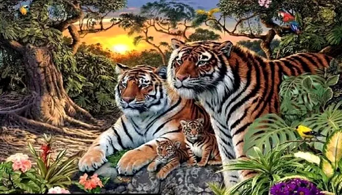 Iluzie optică: doar 1% dintre oameni poate observa toți cei 16 tigri în 40 de secunde.