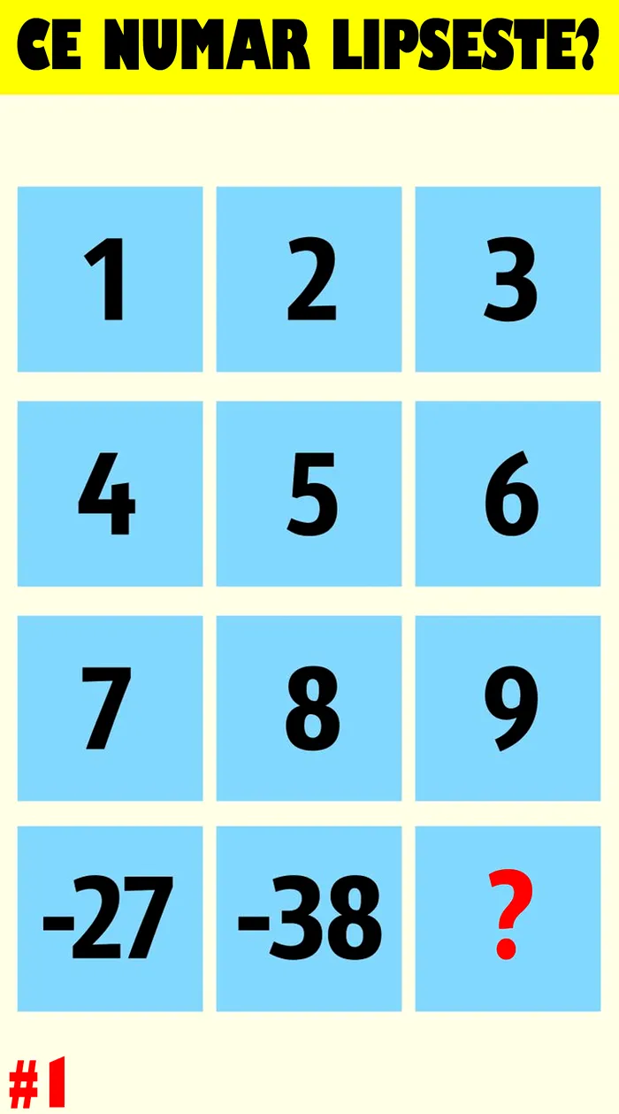 Prima problemă din acest test este reprezentată de o serie de numere din care unul este necunoscut.