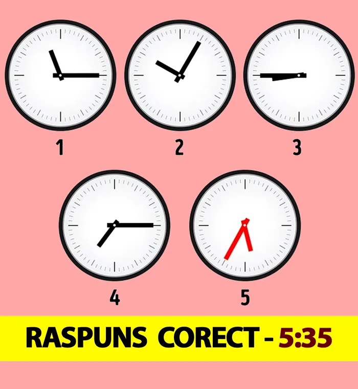 Pentru acest test va trebui să identificați ce oră indică al cincilea ceas din imaginea de mai sus.