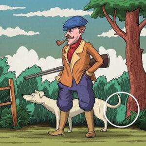 Imaginea a fost creată ca un test atât pentru copii, cât și pentru adulți. În această iluzie optică, există un vânător și câinele său care stau în afara pădurii. Vânătorul poartă o pușcă pentru a vâna iepurele în pădure. Cu toate acestea, Iepurele se ascunde undeva în pădure.
