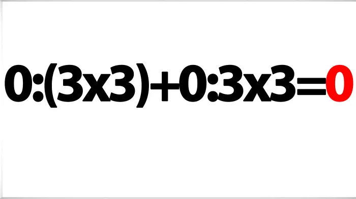 Pentru a putea trece acest test, va trebui să rezolvați în doar două secunde următorul exercițiu: 0:(3×3)+0:3×3 = ?.