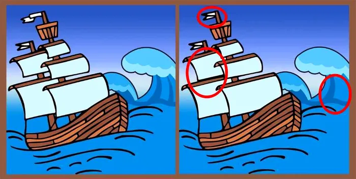Această provocare de tip „găsește diferențele” prezintă două imagini identice ale unei nave în mare. Deși cele două imagini par identice, la prima vedere, nu sunt. Există trei diferențe între cele două imagini.