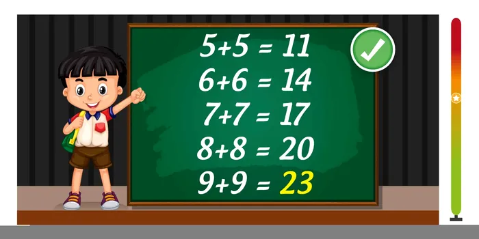 Astfel, în ultima ecuație, trebuie să adăugăm răspunsul cu 5. Obținem atunci 9+9=18+5= 23.