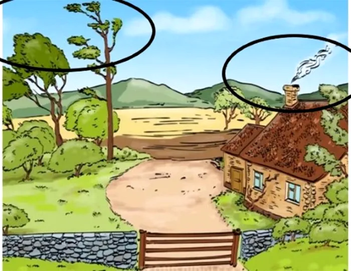 Aceasta este greșeala din acest test IQ: direcția fumului ieșit pe hornul casei este diferită față de înclinația arborilor