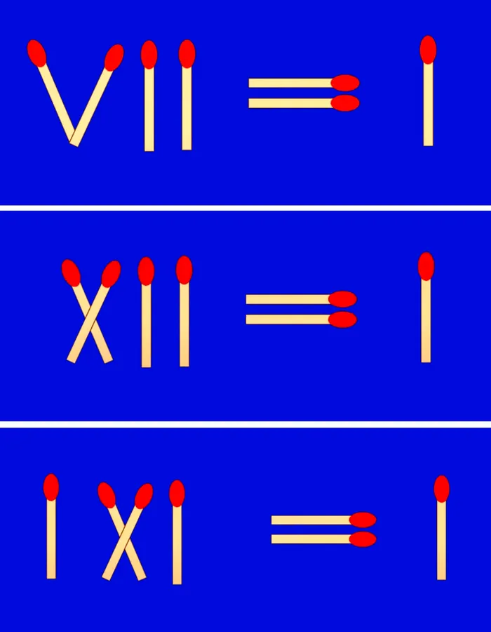 Trebuie să mutăm primul băț de chibrit, pentru a crea un X, apoi vom avea următorul rezultat: XII=I.