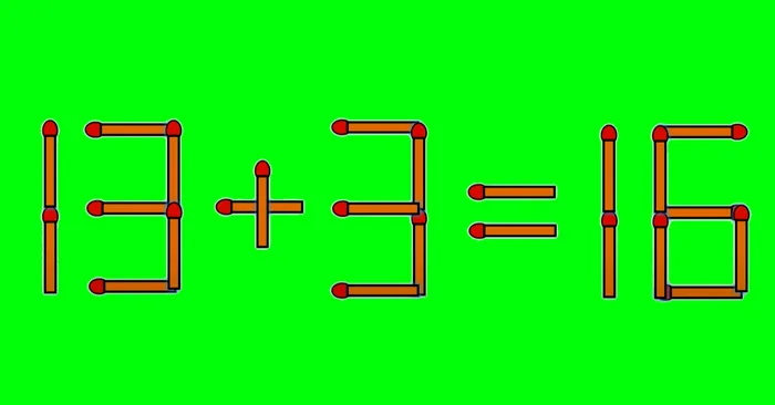 Ei bine, răspunsul este următorul: Se ia un băț de chibrit de la 9, care devine 3, și se transformă minus în plus. Astfel, ecuația corectă va fi… 13 + 3 = 16!