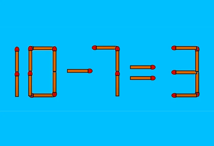 Priviți cu atenție egalitatea incorectă: 18 – 1 = 3. Un singur băț trebuie mutat. Pentru o formă logică, tot ceea ce trebuie să faceți este să mutați bățul de chibrit de la cifra 8, din mijloc, devenind 0 (zero). Apoi, chibritul va fi mutat la cifra 1, care va deveni cifra 7.