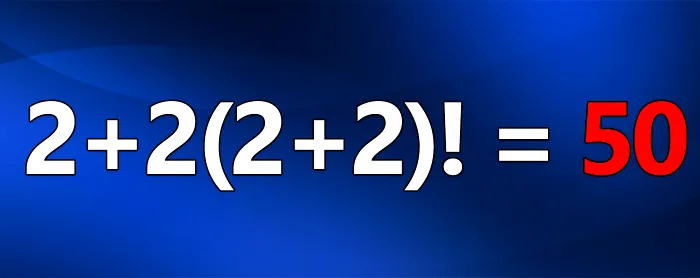 Cei cu un IQ superior pentru observa faptul că sunt 2 semne de exclamare în expresia: „Calculați 2+2(2+2)!!”. Drept urmare, primul „!” este, de fapt, semnul factorial.