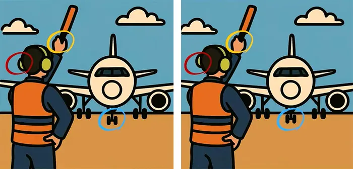 Observă aceste două imagini cu un șef de trafic aerian care ghidează avionul. La prima vedere, pot părea exact similare, dar atenție, maestru al puzzle-urilor! Există 3 mici diferențe ascunse între cele două imagini, iar provocarea pentru tine este să le găsești pe toate în doar 45 de secunde. Sună ușor? Mai gândește-te, pentru că acest puzzle este mai dificil decât pare!