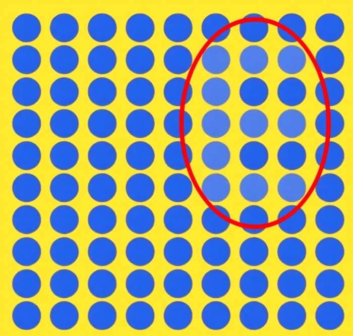 În imaginea viu colorată de mai sus, este vizibilă o grilă de cercuri albastru intens. De asemenea, în grilă sunt prezente și câteva cercuri albastru deschis. Pe lângă cercuri, în grilă este ascunsă o literă. Cititorii trebuie să găsească litera ascunsă în 7 secunde.