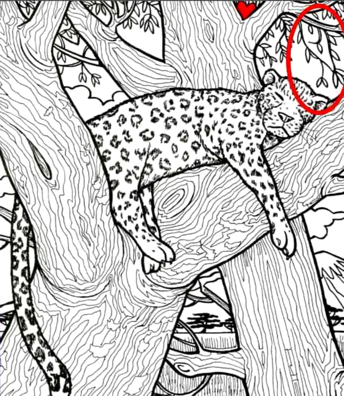La o atenție sporită asupra imaginii, poate fi observat un jaguar care doarme într-un copac. De altfel, un alt element care poate fi identificat rapid reprezintă o inimă roșie, în partea superioară a imaginii. Totuși, unde se află peștele? Liniile din imaginea de mai sus pot induce în eroare privitorul.