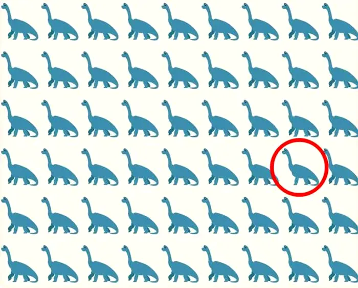 Unul dintre dinozauri este diferit față de restul din imagine, iar provocarea pentru cititori este să-l găsească în 5 secunde.