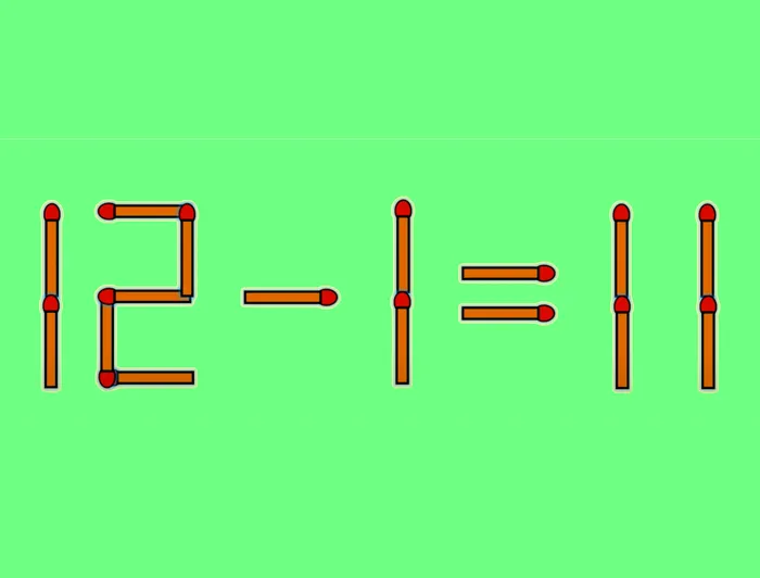 Priviți cu atenție scăderea incorectă: 13 – 1 = 11. Un singur băț trebuie mutat. Pentru o operație logică, tot ce trebuie să faceți este să mutați un băț de chibrit de la cifra trei, pentru a o transforma în cifra 2.