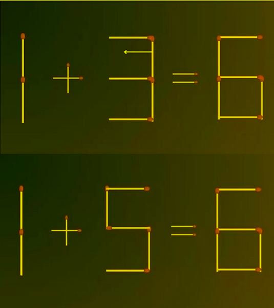 Așadar, mută un băț de chibrit pentru varianta corectă: 1+3=6!
